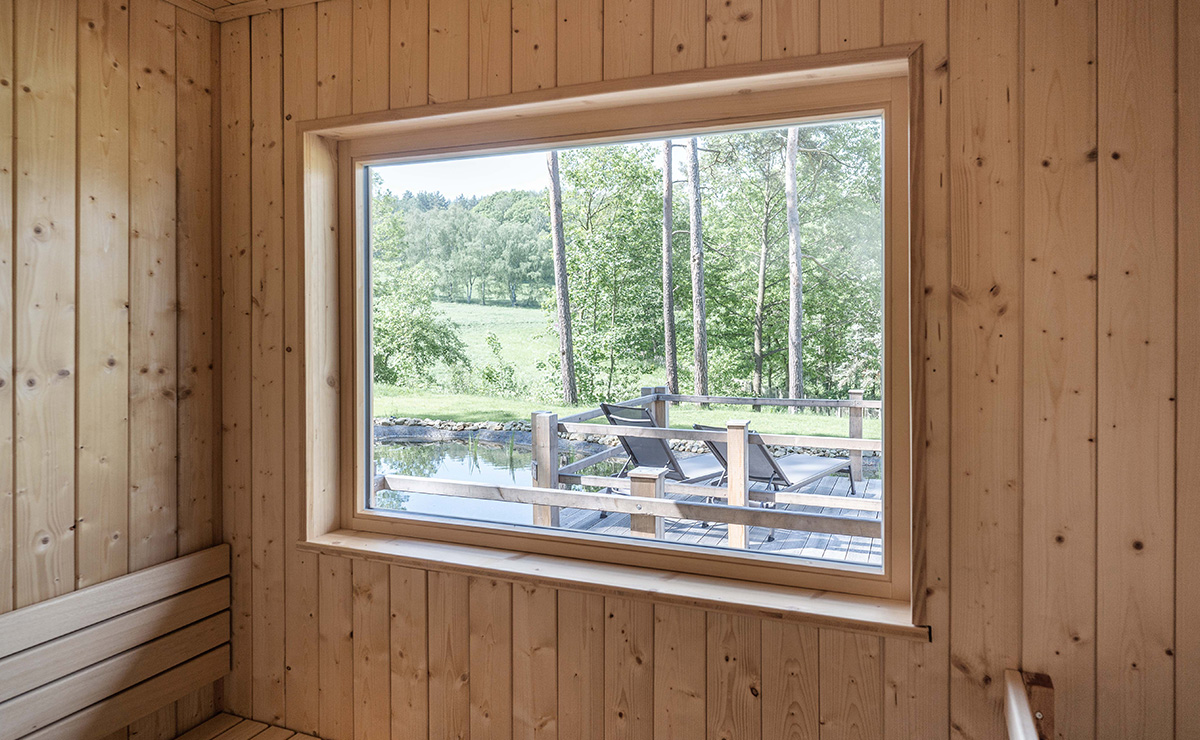 Unsere rustikale Blocksauna am Naturteich mit Blick über Wald und Wiese lädt zum Entspannen ein. Im überdachtem Ruhebereich und/oder beim Sonnenbaden auf den Liegen auf unserer großen Wiese können Sie die Füße hochlegen und die Zeit vergessen.