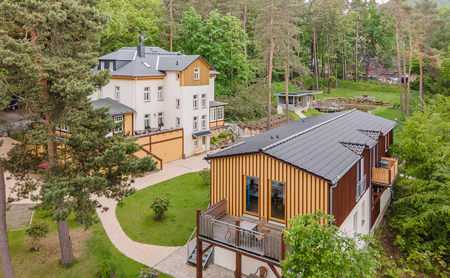 Fernab des Verkehrstrubels bietet unser weitläufiges, naturbelassenes Grundstück viel Freiraum für individuelle Aktivitäten und Erholung im Grünen. Zwischen blühenden Rhododendron-Sträuchern, wild bewachsenen Grünflächen und alten Bäumen laden idyllische Sitzecken und Ruhezonen zum Verweilen ein. Hinter dem Haus gibt es einen direkten Zugang zum berühmten Malerweg.