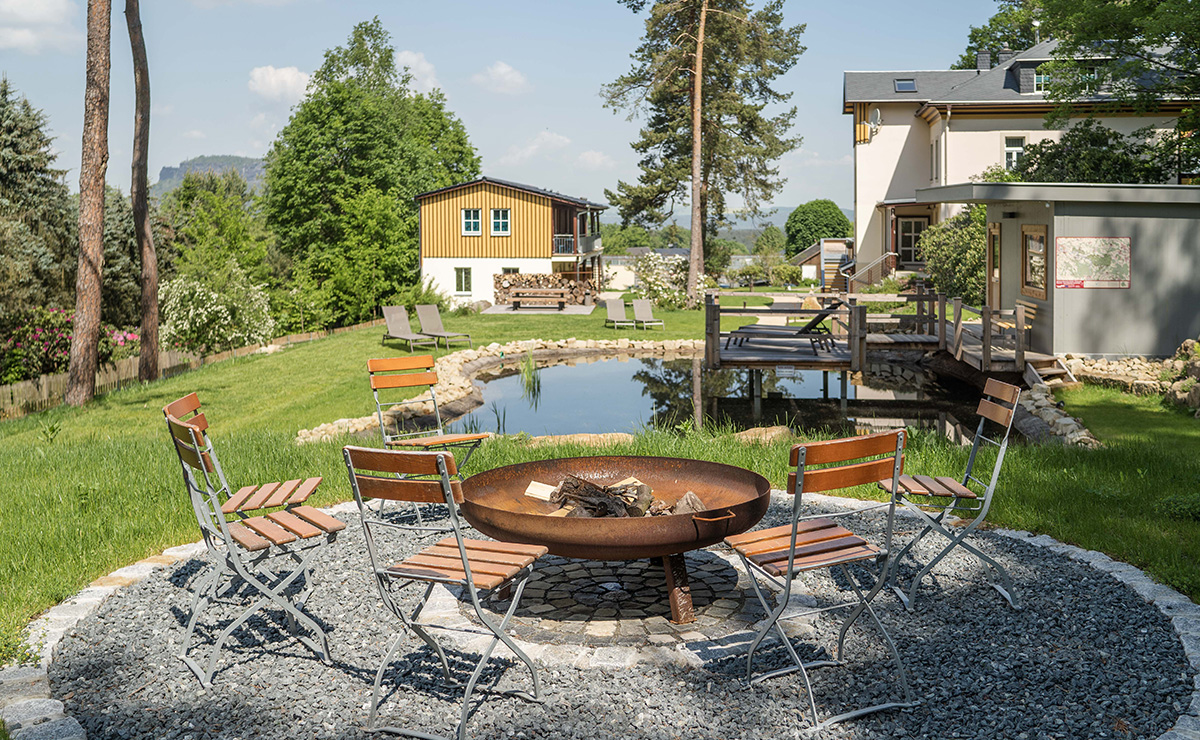 Der Grillplatz, unsere Sitzecke und unser Pavillon mit traumhafter Aussicht über unseren Garten bis zum Lilienstein laden ein, den Abend auf unserem Grundstück ausklingen zu lassen. Bei schlechtem Wetter steht unseren Gästen der kleine Aufenthaltsraum im Souterrain des Hauptgebäudes zur Verfügung. Hier finden Sie auch Getränke in unserer Maxibar, Kaffee und Tee können sich auch jederzeit zubereitet werden.